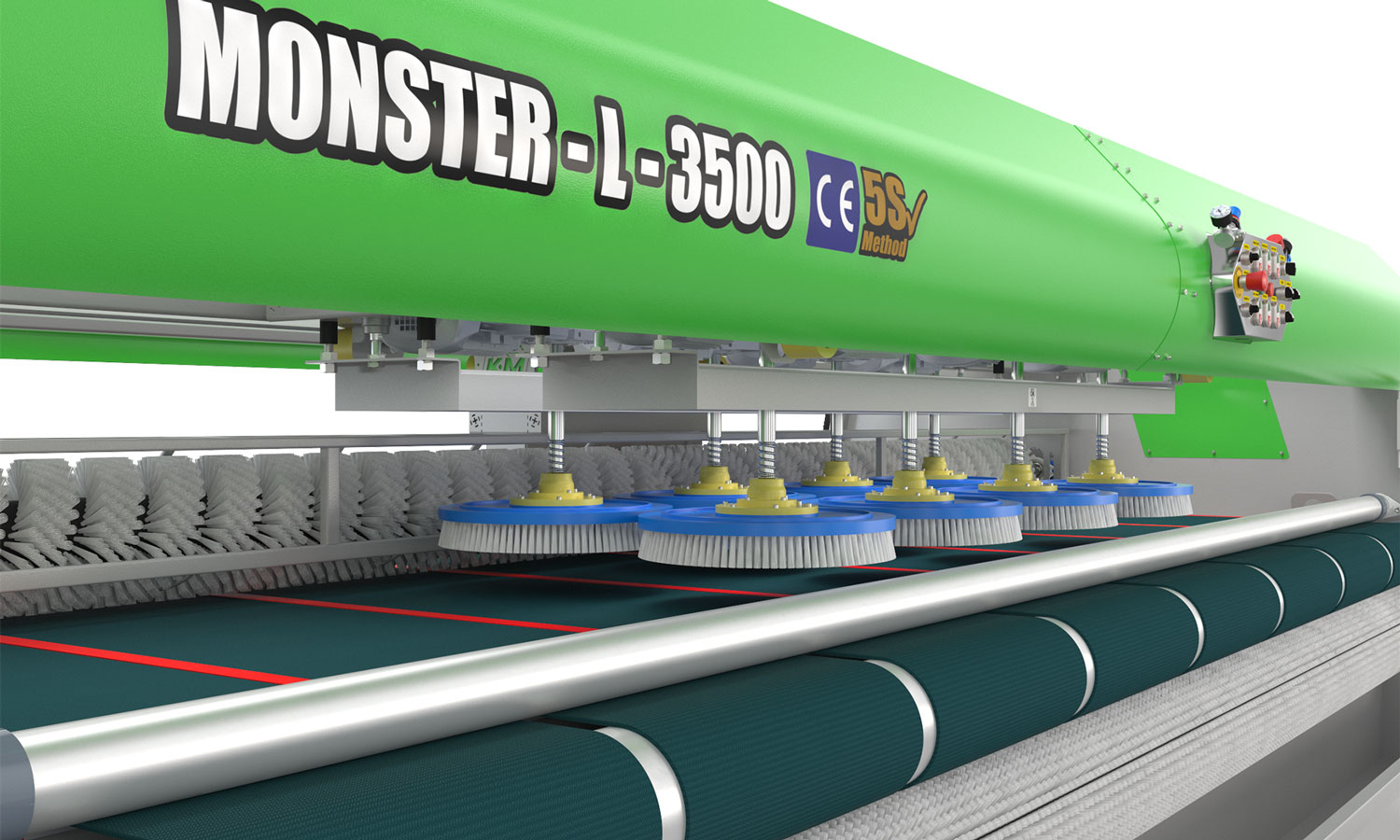 Un potente sistema de limpieza que utiliza 8 cepillos de disco (se usan reductores de alta calidad de 1 clase)